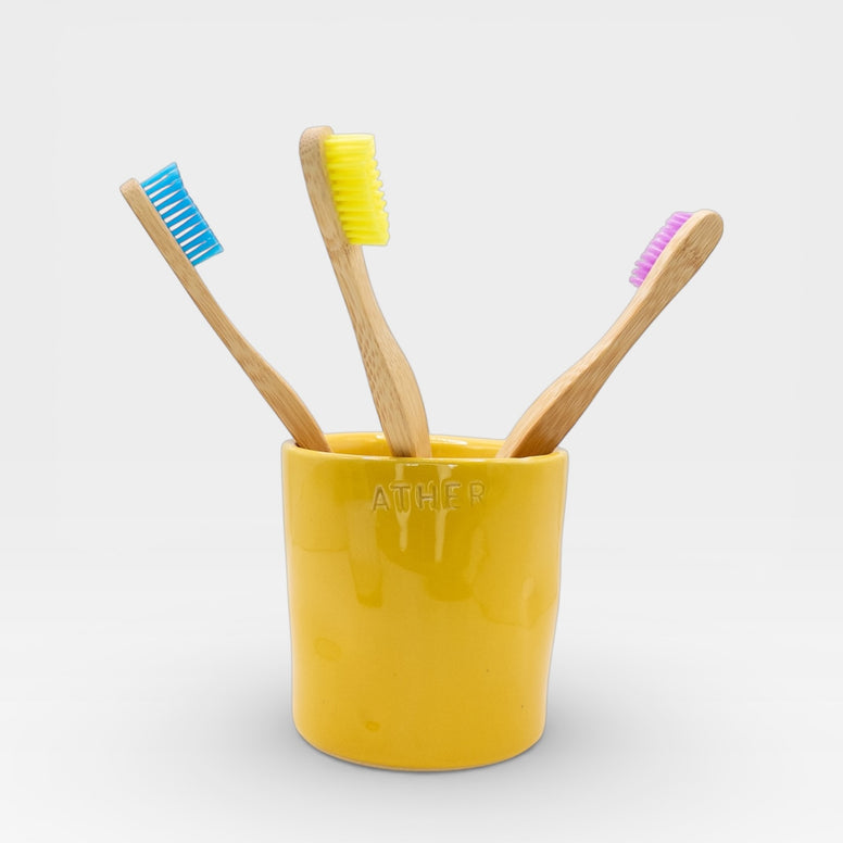 This artisanal toothbrush holder is handcrafted from stoneware and fired at 1230°C, giving it strength, durability, and a natural, tactile feel.